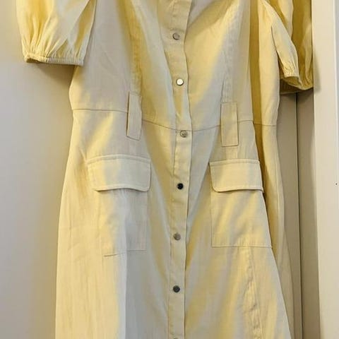 Svart Zara klänning med ett färgglatt mönster. Klänningen har en v-ringning och trekvartsärmar. Den har en rak passform. Storlek M