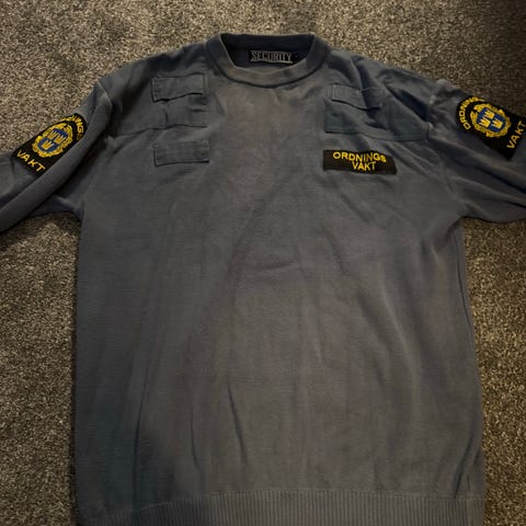 Säljer en hel uppsättning med ordningsvaktskläder och annan utrustning.