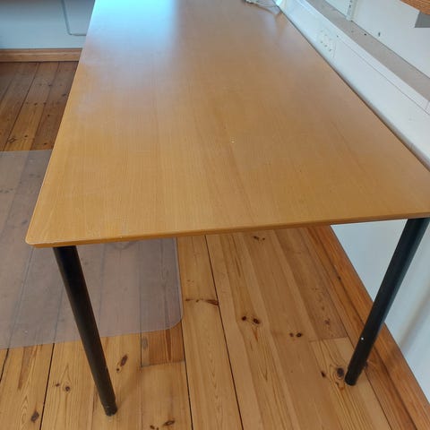 IKEA Bord Prioritet. Bredd 80 cm, Längd 160 cm, Höjd: går att reglera mellan 60 till 90 cm. Bordet är tungt och stabilt. Bordsskivan väger cirka 22 kg. De avtagbara benen väger cirka 1,5 kg styck. Finns för avhämtning i Uppsala.