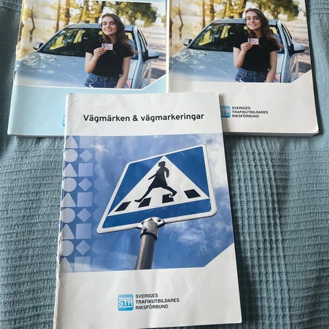 Körkortsböcker: Trafikens grunder, Köra bil, Vägmärken & vägmarkeringar, Handledardoken, Theoriboken, vägmärkestest, vägmärkesförteckning