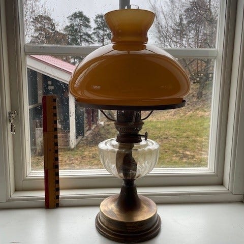 En mycket vacker antik bordslampa, lampa. Omgjort fotogenlampa. Tidigt 1900-tal.