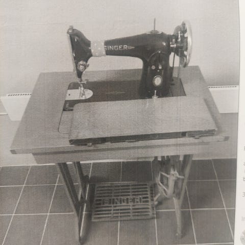 Äldre Singer symaskin i originalbord