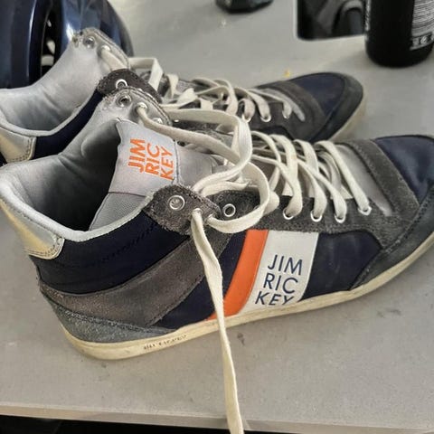 Helt nya handgjorda sneakers från Jim Rickey i storlek 45. Skorna är i mocka och tillverkade i Portugal. Skorna finns på Gärdet eller skickas mot portokostnad.