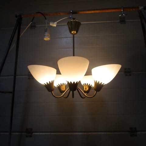 Mycket fin äldre taklampa, modell är en så kallad spelbordslampa. Fungerar fint.