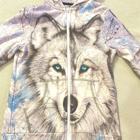 Körde runt hela Luleå för att hitta denna skönhet då sonen älskade karaktärerna. Chansade på att den skulle passa då det bara fanns en strl. 98. Därav absolut nyskick. Köptes på Babyproffsen/leklust.