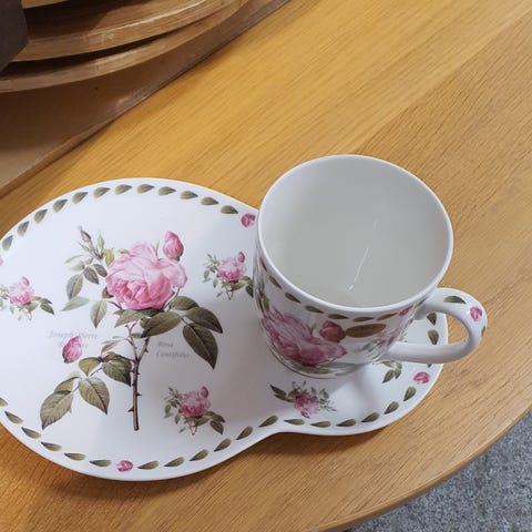 En mugg med motiv av Peter Rabbit och Benjamin Bunny, (Pelle Kanin och Benjamin Kanin på svenska), och ett citat på engelska: