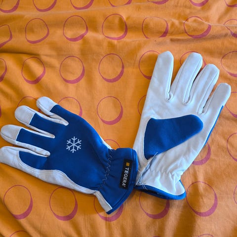 Stickade vinterhandskar med latexbeläggning i storlek 10.
