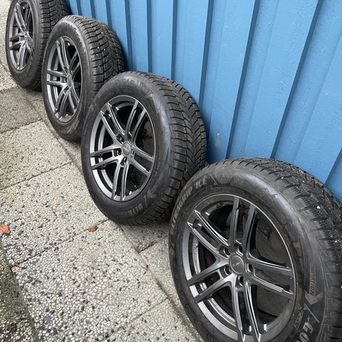 Har en uppsättning vinterfälgar med däck.