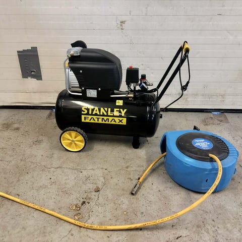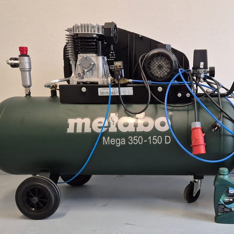 Mycket fin kompressor, knappt använd överhuvudtaget, tanken volym ca 100 - 130 Liter