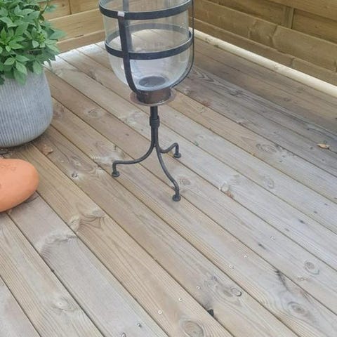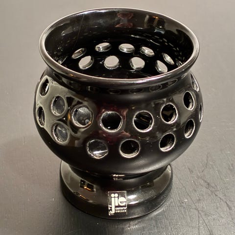 Mått ca 20,5cm hög och 10,5cm i diameter i botten. Passar värmeljus.
