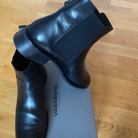 Helt nya boots från Vagabond i svart skinn i stl 38. Normala i stl, guldspänne samt dragkedja på insidan. Mycket fina, aldrig använda.