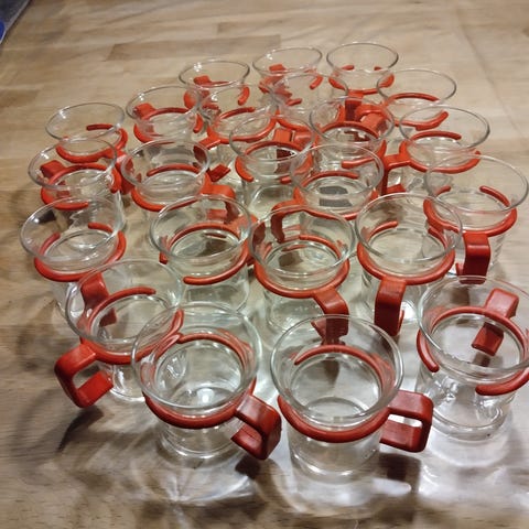 2st retro teglas Vintage röd plast 12cm Fint skick