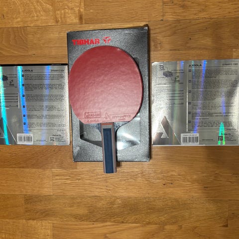 Komplett offensiv pingisracket unika stommen TIBHAR Black Carbon med JOOLA Dynaryz Inferno Max+ tjocklek, blir inte mer offensivt.