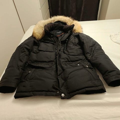 Otroligt snygg, stilren och varm jacka från coola märket kvalitetsmärket RifridgiWear. Klarar ned till 40 minusgrader och är oerhört välsydda och av hög kvalitet. Svart jacka med vackraste, mjukaste pälsen på kragen i lite mörkgråmelerat. Bälte i midjan som går att fästa bak eller fram. Jackan är u jättefint skick och oerhört väl omhändertagen. Dock har den ena av de små hållarna på dragkedjan gått sönder. Går att använda ändå utan problem, se bild som visar. Nypris: 9500 kr, nu 3000 kr! Otroligt snygg och mycket jacka för pengarna. Stl. XL men är lite liten i storlek så passar Stl L.