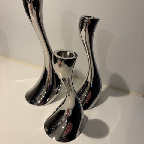 Tre st ljusstakar från Georg Jensen. Ljusstakarna är i mycket fint skick och det förekommer endast tecken på användning i ljushållaren där ljusen sitter.