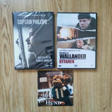 Ett paket med blandade DVD-filmer.