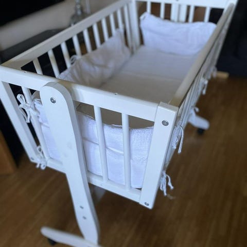 Säljer denna fina vagga i furu som är tillverkad privat till oss av en finsnickare.