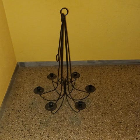 För 8 ljus. Stålfärgad och lackad.