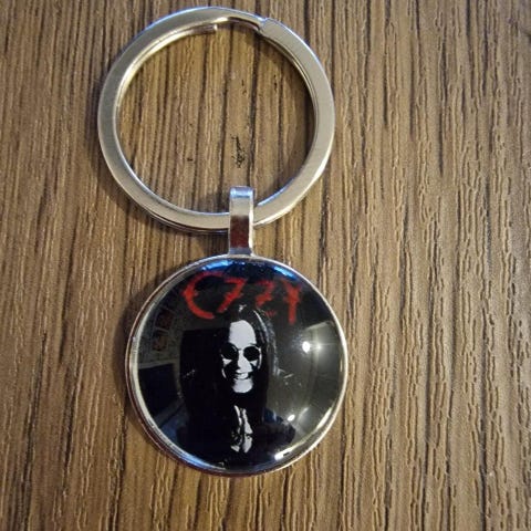 Nyckelring Elvis. 3,5 × 2,8 cm. Glasöverdrag rund.