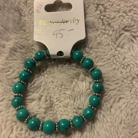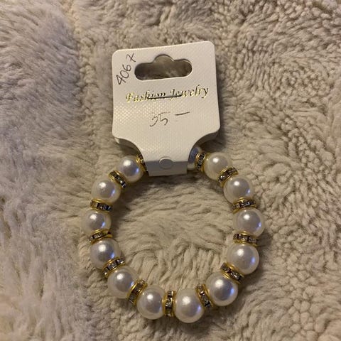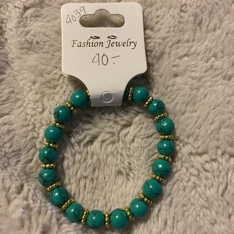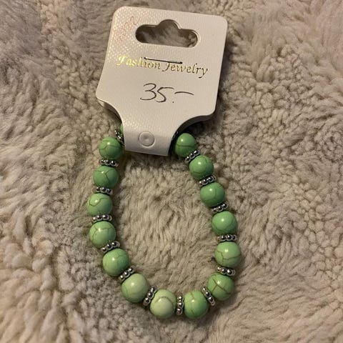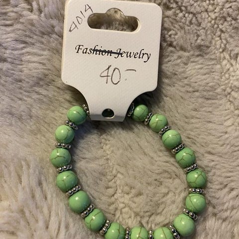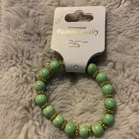 Armband m mörkgröna melerade o guldiga pärlor ca 12,5 cm