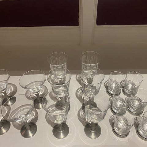 6st vinglas med tennfot. Rune Tennesmed från gjutaren i Kalmar. Höjd 17,5cm.
