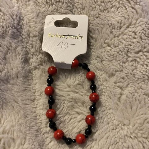 Armband m vita melerade pärlor o texten DIABETES ca 14 cm