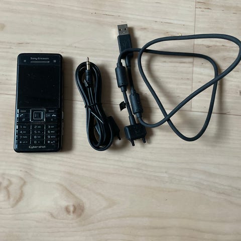 En gammal hederlig mobiltelefon, komplett i sin kartong med laddare och även oöppnade tillbehör. Även installations-cd.