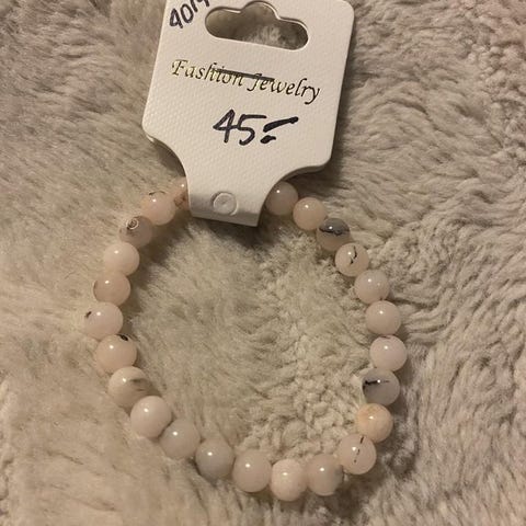 Armband med beige/rosa stenpärlor ca 15,5 cm