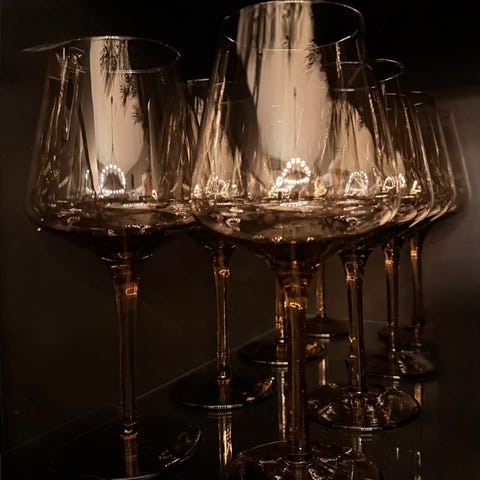 Två modeller av bra vinglas i plast. 18st av den släta modellen i måtten höjd 19cm och diameter 7,5cm. 12st av den "slipade" modellen i måtten höjd 17cm och diameter 7cm. Perfekta runt poolen och på utflykten. Sparsamt använda.