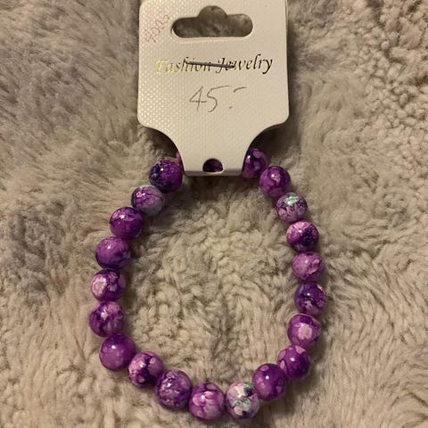 Armband med röda/gröna melerade glaspärlor ca 14,5 cm