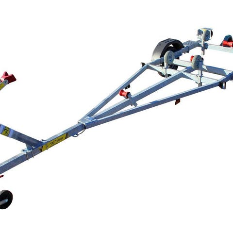Vattensäkra hjulnav och massivgummistöd gör trailern lämplig för regelbunden användning och robust upptagning/sjösättning.