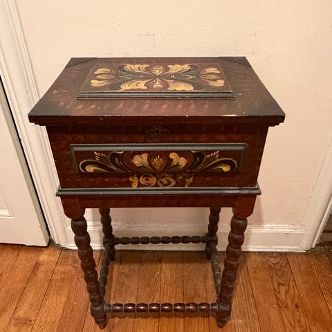 Trälåda på ben snidad gammal