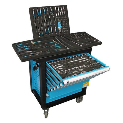 Vagnen har centrallås , tavla på sidorna, krokar mm.
