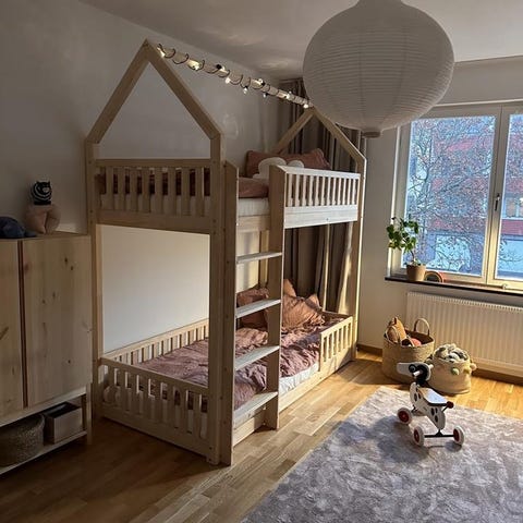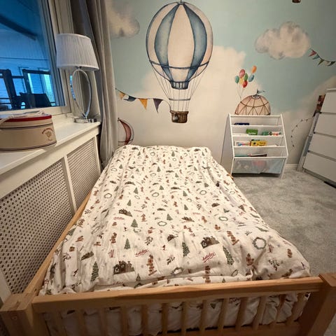 Säng till barn, ”Alex” från Babylove med måtten 90x200. Stått oanvänt i förpackning i ett år, och monterat då våran dotters tilltänkta säng blev försenad. Den är därför endast använt några dagar i väntan på ny säng. Helt nyskick. Ena hörnan på sängen är det små märken i träet som var så vid leverans. Jag upptäckte det när jag plockade isär sängen. Inget jag märkt under tiden eller är särskilt synligt.