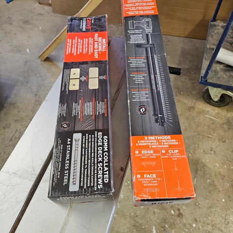 Vill du montera din trall till sommaren med dolda skruvar är detta ett riktigt proffsigt verktyg som lämnar ett bra resultat efter sig handtagen bits och extra distanser ingår