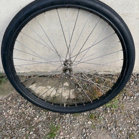 ett framhjul med bra däck och slang