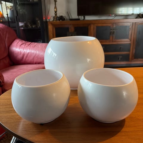 Säljer 4st matt-vita stora krukor med skålar i terrakotta. NYTT
