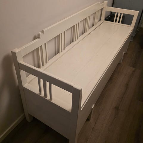 En gammal kökssoffa från 50-60 talet den går att dra ut underdel och få som 2 bäddar.Det finns även möjlighet som förvaring som den är nu ett rejält utrymme under.