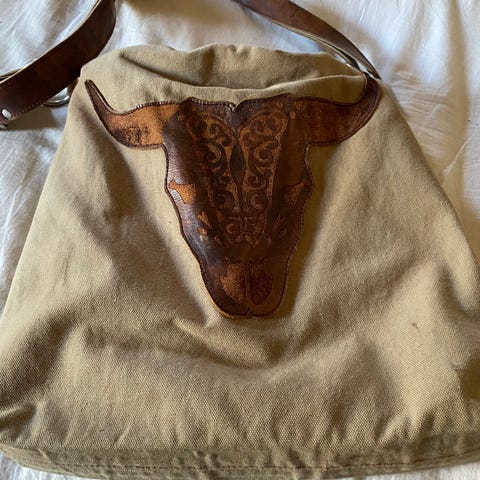 Säljer en vintage väska i form av en säck med amerikansk stämpel. Det är få antal exemplar som har producerats av denna modell.