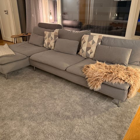 Mörkgrönt sofföverdrag till 3-sits Söderhamn. 100% bomull. Något blekt men det tänker man inte så mycket på när den sitter på plats. Kul om den kan komma till användning.