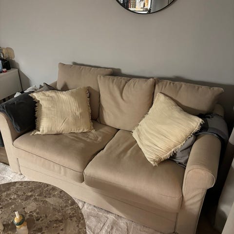 Jag säljer pga av att jag har flyttat till mindre lägenhet och är i behov av en bäddsoffa, annars hade jag behållt soffan.