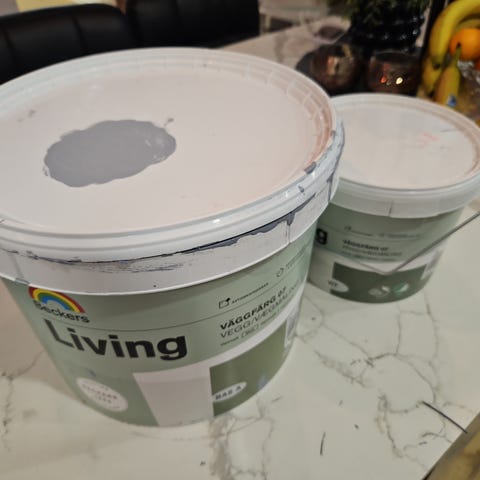 Fått över färg efter jag målat ett rum köp färgen för mindre än hälften vad det kostar på byggfabriken