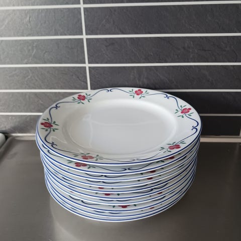 Pris för 12 st mat tallrikar 1500kr (nypris 2388kr)