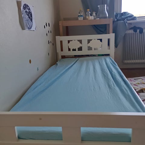 En rejäl och praktisk barnsäng från Carena. Sparsamt använd, så den är i gott skick.