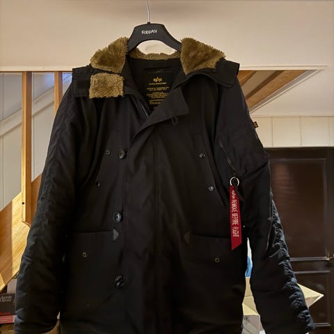 Oöppnad jacka. En av deras mer rejäla vinterjackor. Storlek S herr (rymlig lång jacka). jacka vinterjacka märkesjacka. Som ofta med vinterjackor så är den större än angiven storlek snarare en medium. Passar S-M.