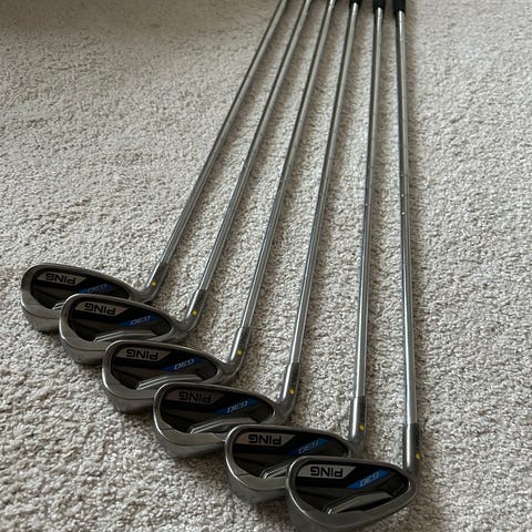Jag säljer ett järnset Ping G20, 5-9, vänster, förlåtande och perfekt för nybörjare, förlängda 1,5 tum med helt nytt grepp på alla klubbor. Förlängning av klubborna kostade 1500 kr så får du dem i bra priset.