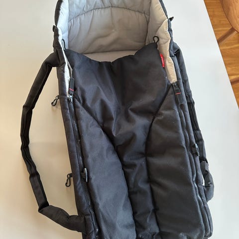 Jättefin Mjuklift från Britax. Modell Britax Go Big Soft Carrycot. Enbart använt i 4 månader så i mycket fint skick. Allt är helt. Glömde ta bild med locket på men den sätter man fast med dragkedja, se sista bild.