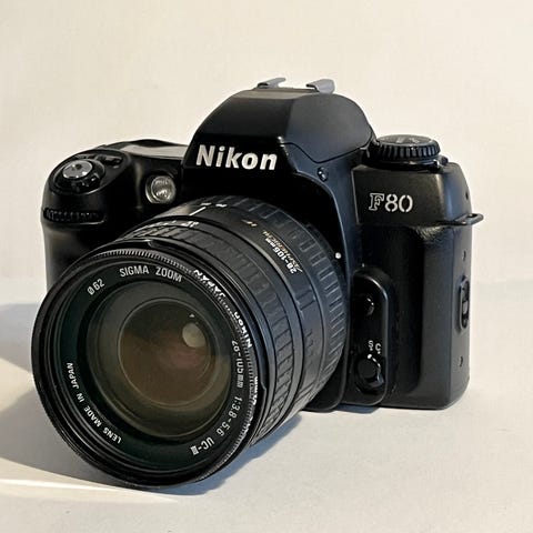 Analog Nikon kamera med lins.