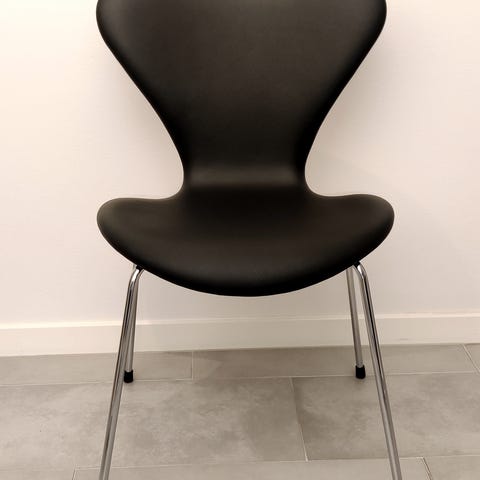 Sex unika skalstolar LILJAN/MÅSEN, formgivna av den legendariske danske designern Arne Jacobsen, i näst intill nyskick säljes privat.