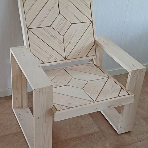 Amerikansk Adirondack stol med fotpall vitmålad. Mycket skön att sitta i, armstöd med plats för ett glas bubbel. När jag tog bilden, så hade jag inte hunnit måla stolen, men den är vitmålad.
